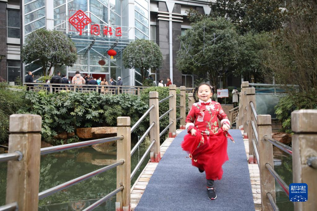 貴陽市觀山湖區金陽街道金元社區內,一名孩子在奔跑玩耍(2月4日攝)。新華社記者 劉續 攝