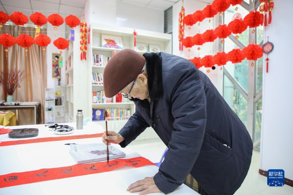 貴陽市觀山湖區金陽街道金元社區書屋內,一名老人正在練習書法(2月4日攝)。新華社記者 劉續 攝