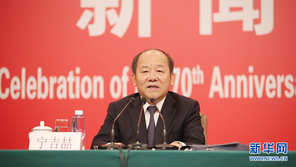 ??? 9月24日,慶祝中華人民共和國成立70周年活動新聞中心在北京梅地亞中心二層新聞發(fā)布廳舉辦第一場新聞發(fā)布會。圖為國家發(fā)展和改革委員會副主任、國家統(tǒng)計局局長寧吉喆介紹相關(guān)情況。新華網(wǎng)記者 陳競超 攝