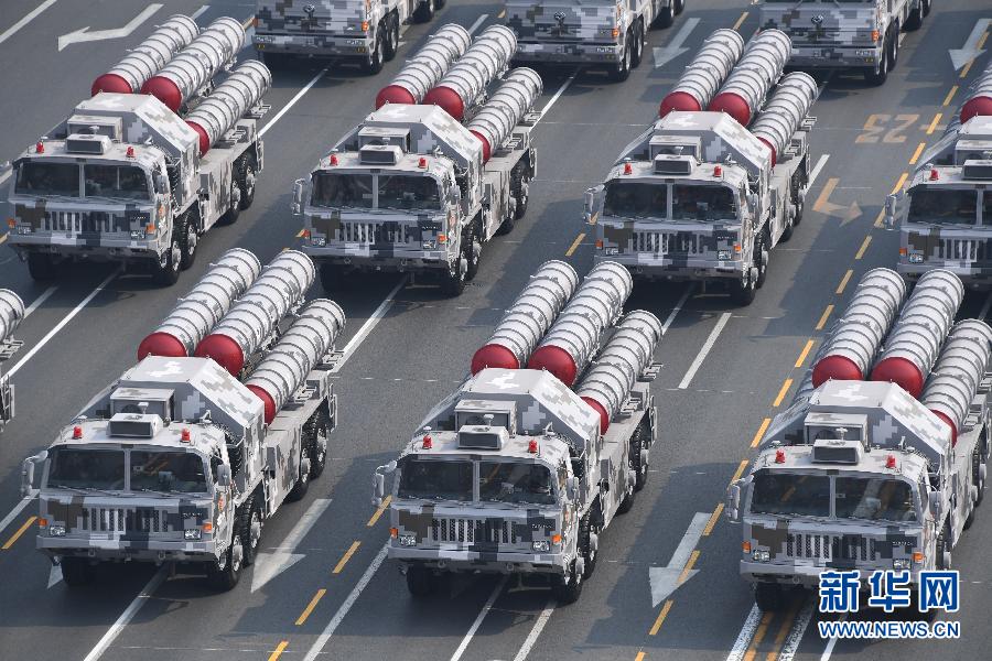 新華社北京10月1日電(記者張玉清、張汨汨)10月1日接受檢閱的地空導彈第1方隊,由劉明豹少將、韓憲鋒少將領隊。方隊裝備由紅旗-9B遠程地空導彈和紅旗-22地空導彈混編而成。兩型裝備能夠在復雜電磁環境下,攔截多種空襲兵器,構筑起區域防空的堅固屏障。