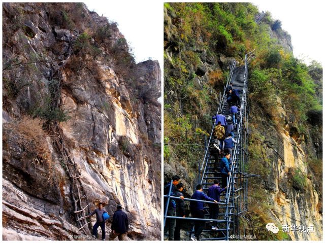 大涼山“懸崖村”“天梯”今昔對比(來源:新華視點(diǎn)微博)