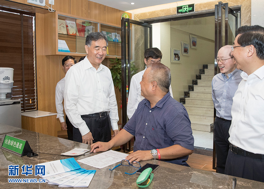6月6日至7日,中共中央政治局常委、全國政協(xié)主席汪洋在廈門出席第十屆海峽論壇期間,就兩岸經(jīng)濟文化交流合作情況進行調(diào)研。這是6月7日,汪洋在廈門市湖里區(qū)殿前街道興隆社區(qū)便民服務(wù)大廳了解臺胞在閩生活工作情況。新華社記者 王曄 攝