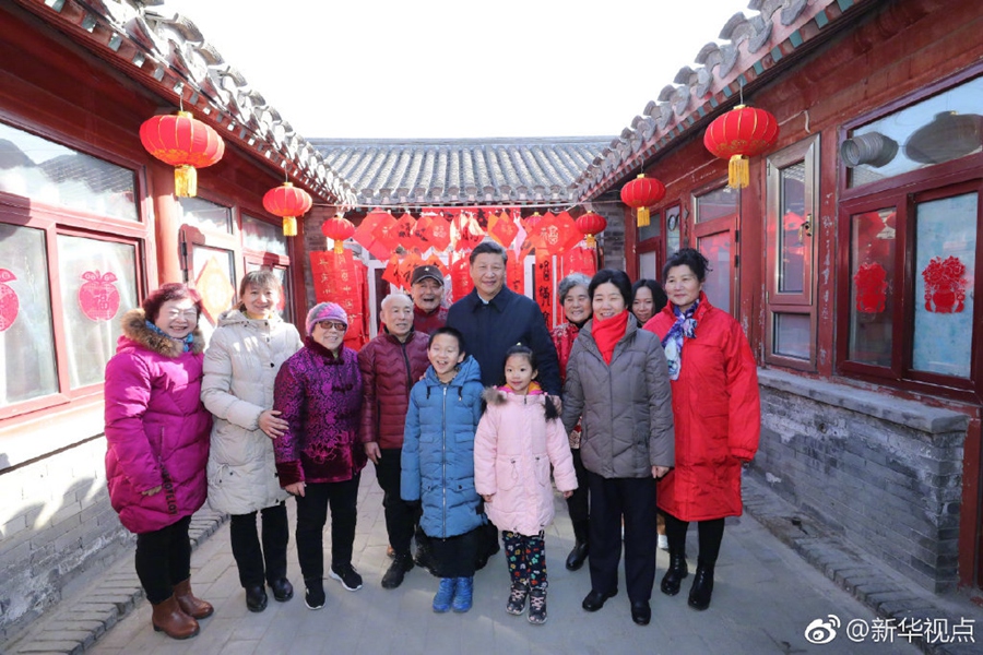 2月1日上午,習近平來到前門東區,沿草廠四條胡同步行察看街巷風貌,聽取區域規劃建設、舊城保護整治、人居環境改善等情況介紹,先后走進兩個四合院看望,同這里的居民一起包餃子、炸饹馇、貼“福”字、聊家常,仔細詢問住房環境有沒有改善、年貨備齊沒有、生活還有什么困難,祝他們生活幸福、新春快樂。四合院里笑語歡聲,習近平對他們說,中國共產黨的追求就是讓老百姓生活越來越好。(記者張曉松、鞠鵬)