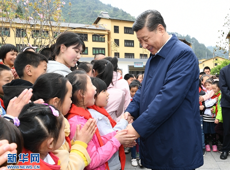 習近平首先來到中益鄉(xiāng)小學。學校操場上,小學生們正在開展課外文體活動。看到總書記來了,學生們圍攏過來,紛紛問習爺爺好,總書記高興地同大家交談,詢問他們學習和生活情況。中益鄉(xiāng)地處大山深山之中,群眾居住比較分散,孩子上學是個難題。習近平指出,“兩不愁三保障”,很重要的一條就是義務教育要有保障。再苦不能苦孩子,再窮不能窮教育。要保證貧困山區(qū)的孩子上學受教育,有一個幸福快樂的童年。習近平走進師生食堂,仔細察看餐廳、后廚,了解貧困學生餐費補貼和食品安全衛(wèi)生情況。習近平囑咐學校和老師既要當好老師,又要當好臨時家長,把學生教好、管好。要把安全放在第一位,確保學生在學校學、住、吃都安全,讓家長們放心。他希望老師們扎根山區(qū),獻身鄉(xiāng)村教育事業(yè),為群眾脫貧貢獻一份力量。