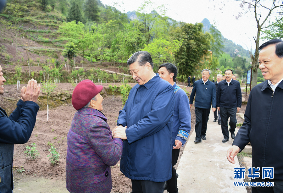 這是4月15日下午,習近平在石柱土家族自治縣中益鄉(xiāng)華溪村看望貧困戶譚登周一家。 新華社記者 劉彬 攝