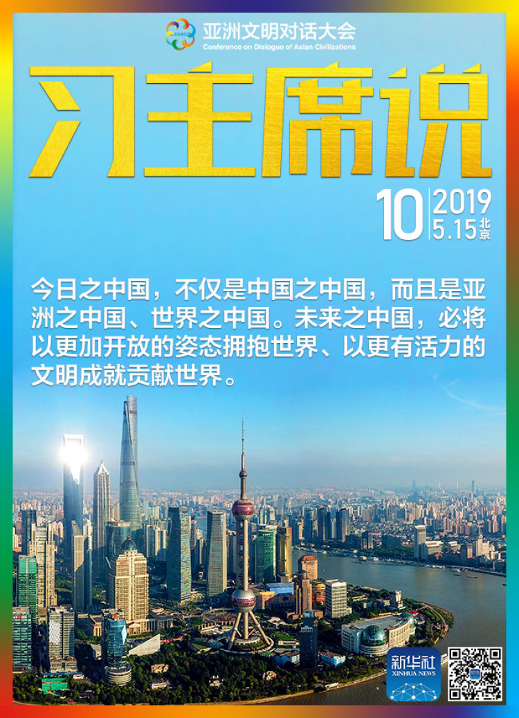 今日之中國,不僅是中國之中國,而且是亞洲之中國、世界之中國。未來之中國,必將以更加開放的姿態擁抱世界、以更有活力的文明成就貢獻世界。