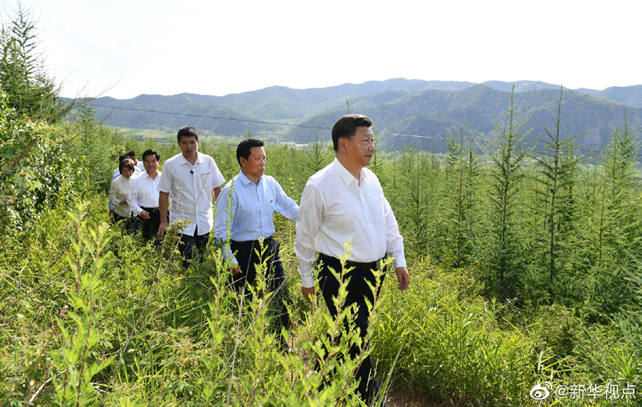 15日下午,習近平總書記來到內蒙古赤峰市喀喇沁旗馬鞍山林場考察。沿著崎嶇的護林小道,習近平步行進入林區察看林木長勢,同正在作業的護林員們親切交談,了解林場建設發展情況。大家告訴總書記,現在生態好了,在上山巡護的時候,時常碰到狍子、野兔、山雞、野豬等野生動物,來旅游的人也多了,山野菜不愁賣了,山貨也特別多,老百姓切切實實得到了好處,更加深刻地認識到綠水青山就是金山銀山。習近平對大家說:“護林員很重要,種樹多不容易??!建設祖國北方和首都生態安全屏障是戰略性的任務,是我們要世世代代做下去的事情。”
