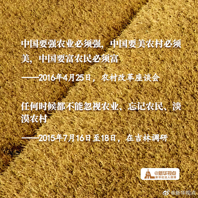“農業農村工作,說一千、道一萬,增加農民收入是關鍵”“中國要強農業必須強,中國要美農村必須美,中國要富農民必須富”……黨的十八大以來,以習近平同志為核心的黨中央關注農業、關心農村、關愛農民,一起來學習總書記的金句? ????