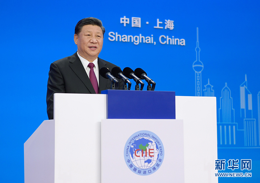 2018年11月5日,習(xí)近平在上海出席首屆中國國際進口博覽會開幕式并發(fā)表題為《共建創(chuàng)新包容的開放型世界經(jīng)濟》的主旨演講。新華社記者 李學(xué)仁 攝