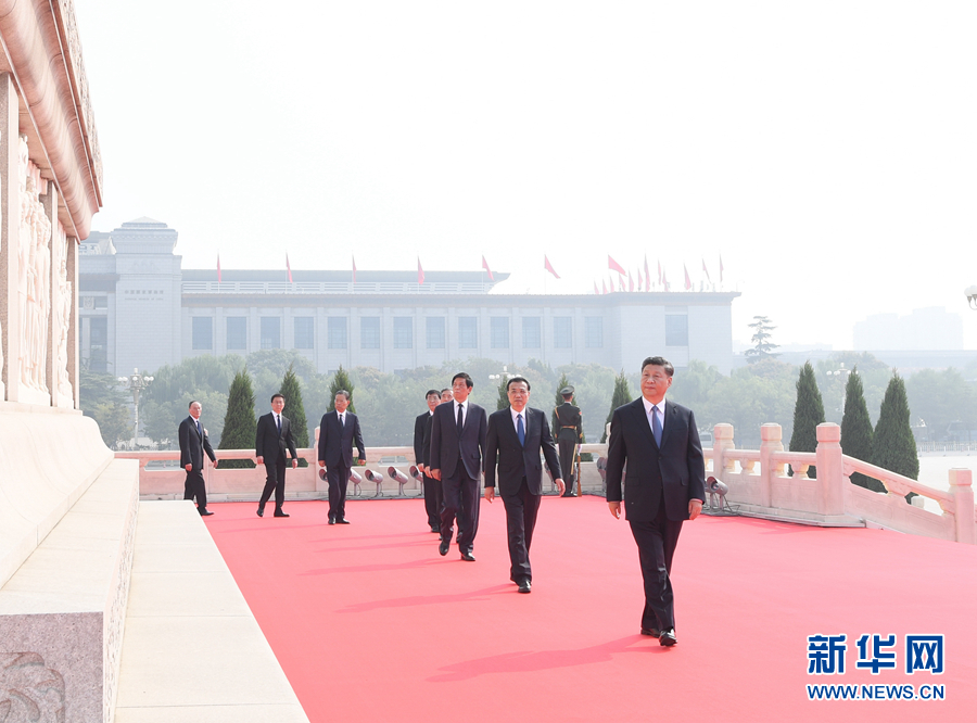 9月30日上午,習近平、李克強、栗戰(zhàn)書、汪洋、王滬寧、趙樂際、韓正、王岐山等黨和國家領(lǐng)導人來到北京天安門廣場,出席烈士紀念日向人民英雄敬獻花籃儀式。儀式前,習近平等來到毛主席紀念堂瞻仰毛澤東同志遺容。新華社記者 鞠鵬 攝