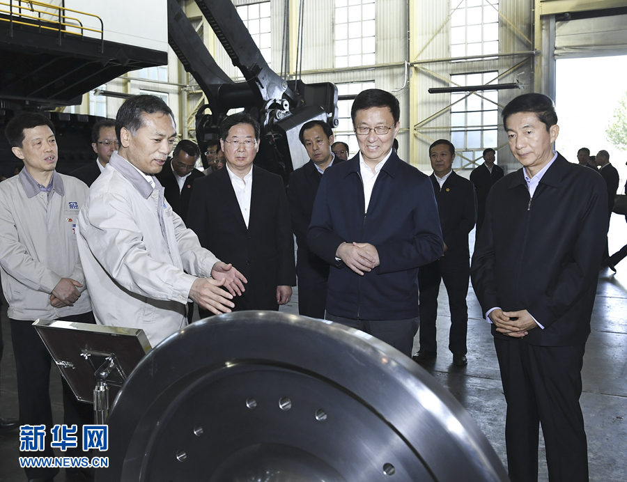 太原重型機械集團有限責任公司是新中國自行設計建設的第一座重型機械廠。韓正來到這里,考察礦山挖掘機、高鐵輪對等先進機械研發生產情況。韓正強調,重型機械是國之重器,是先進制造業的重要支撐,要加快產品智能化步伐,提高生產線和生產設備的國產化率,實現精密零部件加工的技術突破,積極拓展“一帶一路”沿線國家市場,加強人才隊伍建設,打造具有國際競爭力的高端裝備制造產業。韓正走進生產車間,勉勵一線工人抓住轉型升級機遇,推動企業加快發展,實現個人價值。