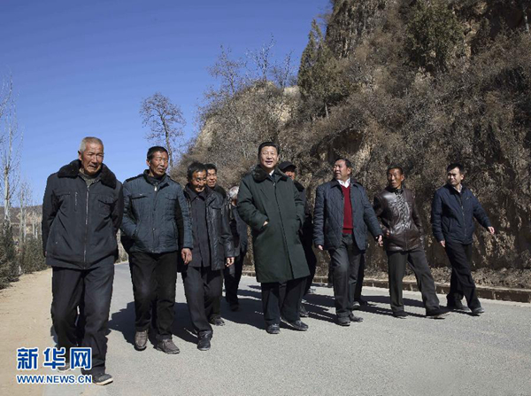2015年2月中旬,習近平到陜西看望慰問群眾,特意找來當年陜甘寧革命老區(qū)所屬范圍的市縣領導人,一起開了陜甘寧革命老區(qū)脫貧致富座談會,了解情況,明確思路,推進工作。
