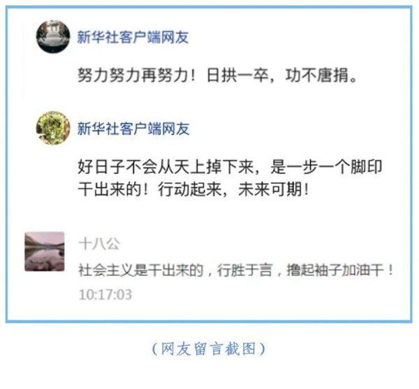 “行勝于言。社會主義是干出來的,各族群眾要一起努力。”網(wǎng)友認(rèn)為總書記的這一指示傳遞出強(qiáng)大力量,感召和激勵全國各族人民砥礪奮進(jìn)。