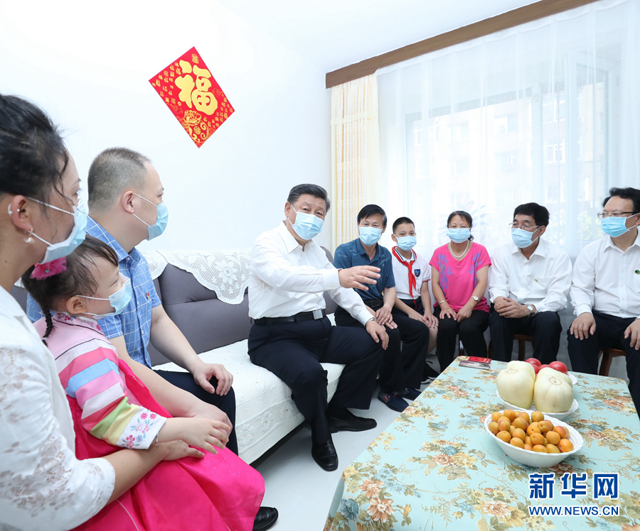 7月22日至24日,中共中央總書記、國家主席、中央軍委主席習近平在吉林省考察。這是7月23日下午,習近平在長春市寬城區團山街道長山花園社區,同居民趙興福一家嘮家常。 新華社記者 鞠鵬 攝