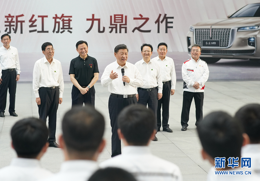 企業展廳里,習近平察看了最新款式的整車產品,了解集團創新驅動、體制機制創新、產業結構優化升級情況,并同職工代表簡短交流。他強調,推動我國汽車制造業高質量發展,必須加強關鍵核心技術和關鍵零部件的自主研發,實現技術自立自強,做強做大民族品牌。當今世界制造業競爭激烈,要搶抓機遇,大力發展戰略性新興產業,實現彎道超車。希望大家發憤圖強、不負韶華,在推動東北振興中奉獻聰明才智,在實現中華民族偉大復興中國夢的進程中書寫壯麗的青春華章。