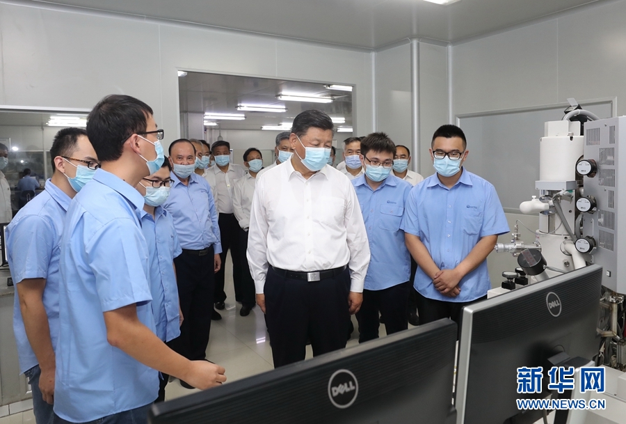 10月12日至13日,中共中央總書記、國家主席、中央軍委主席習近平在廣東考察。這是12日下午,習近平在潮州市潮州三環(集團)股份有限公司實驗室,了解企業自主創新和產業升級等情況。 新華社記者 王曄 攝