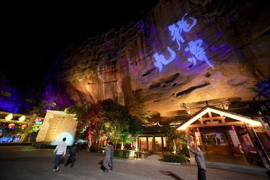 游客前往福建省泰寧縣九龍潭景區體驗夜游九龍潭旅游項目(11月19日攝)。新華社記者 姜克紅 攝