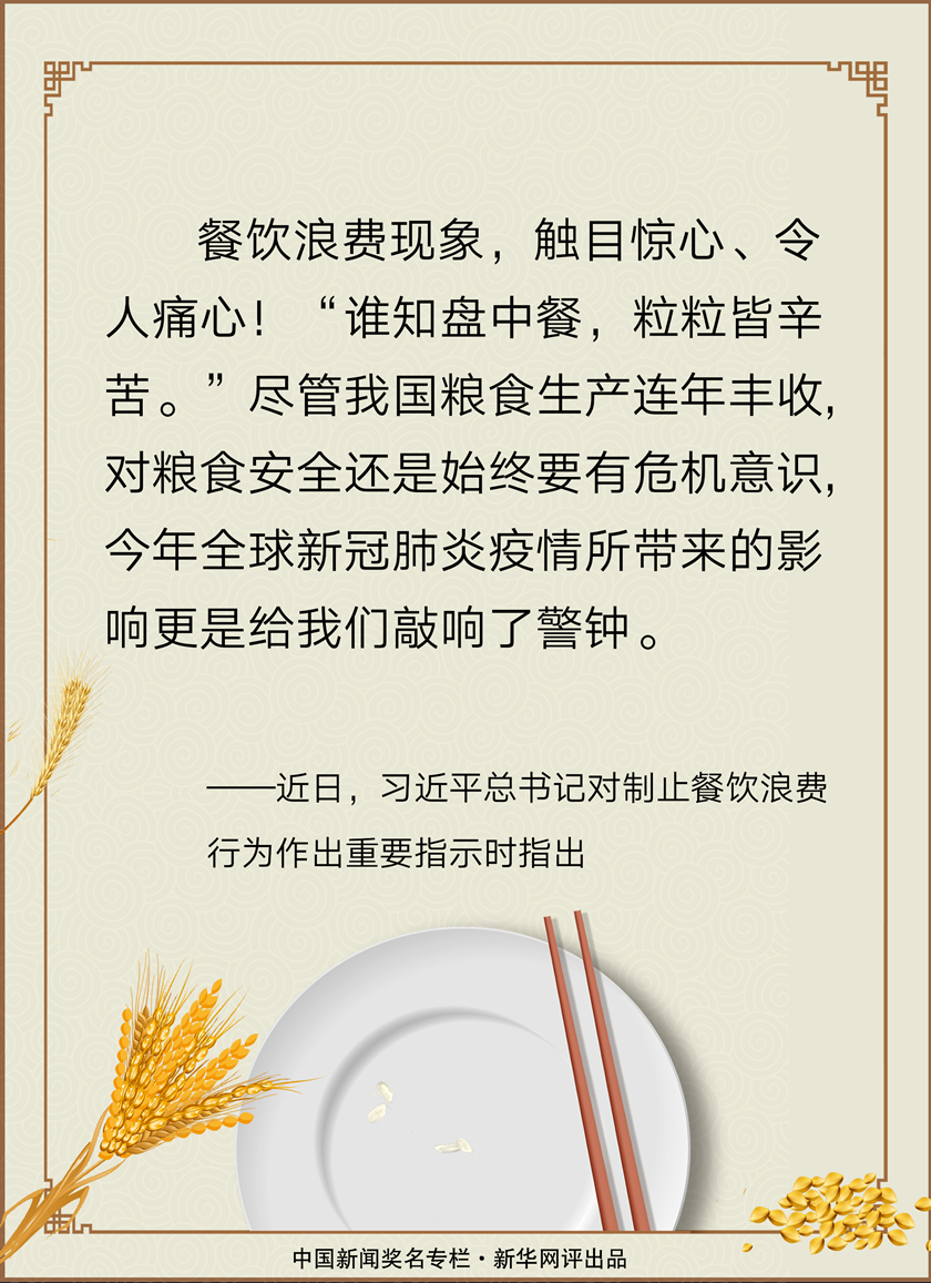 浪費(fèi)之風(fēng)務(wù)必狠剎!厲行勤儉節(jié)約,才能有效凈化社會(huì)風(fēng)氣,培育健康向上的文明風(fēng)尚,需要在思想觀(guān)念上來(lái)一次破舊立新的變革,樹(shù)立新的價(jià)值觀(guān)、生活觀(guān)和消費(fèi)觀(guān)。生活條件越是改善,就越不能丟了勤儉節(jié)約這個(gè)傳家寶。要加強(qiáng)立法,強(qiáng)化監(jiān)管,采取有效措施,建立長(zhǎng)效機(jī)制,堅(jiān)決制止餐飲浪費(fèi)行為。要進(jìn)一步加強(qiáng)宣傳教育,大力弘揚(yáng)中華民族勤儉節(jié)約的優(yōu)秀傳統(tǒng),切實(shí)培養(yǎng)節(jié)約習(xí)慣,推動(dòng)形成綠色發(fā)展方式和生活方式,使厲行節(jié)約、反對(duì)浪費(fèi)在全社會(huì)蔚然成風(fēng)。