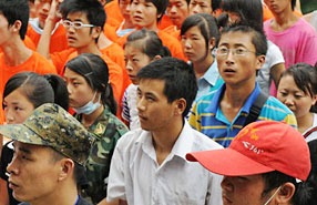 80后、90后大學(xué)生志愿者災(zāi)區(qū)集結(jié)