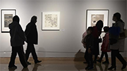2月18日,人们在加拿大多伦多街头观赏冰雕作品。