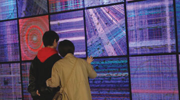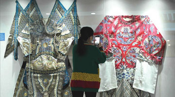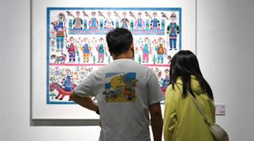 4月20日,观众在展览上观看木乃伊半身棺盖。
