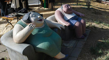 4月20日,观众在展览上观看荷鲁斯雕像。