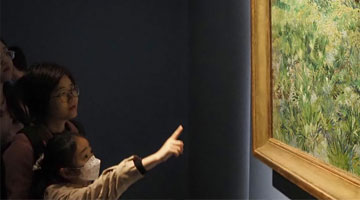 5月11日,游客在陕西历史博物馆唐代壁画珍品馆内临摹壁画。