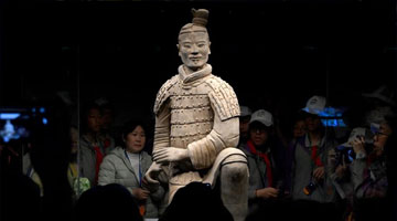 5月16日,观众在参观“海岱日新——山东历史文化展”展出的史前时期陶器。