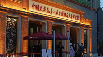 5月25日,在山东省巨野县董官屯镇,农民画师在乡村画院里绘制工笔牡丹画。