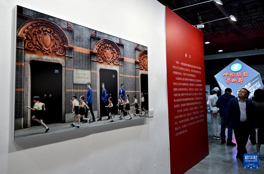 6月18日,观众在第十四届中国摄影艺术节图片展上参观。