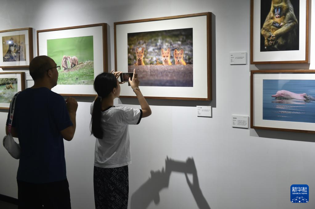 6月22日,参观者在位于三门峡市的中国摄影艺术馆内参观拍摄展出的照片。