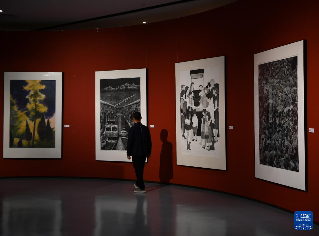 6月27日,观众在参观木刻版画作品。