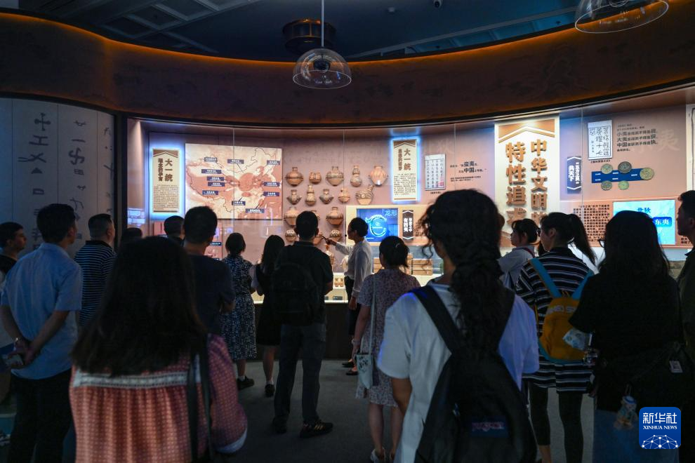 8月2日,参观者观看“铸牢中华民族共同体意识文物古籍展”。