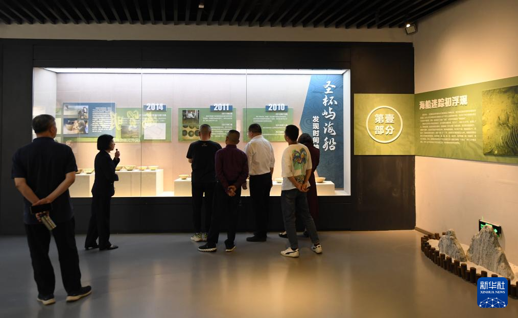 10月30日,人们在龙泉市博物馆参观“海贸明珠”——漳州圣杯屿元代海船遗址水下考古成果展。