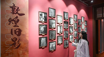 12月12日,游客在长春冰雪新天地一处雪雕前拍照。