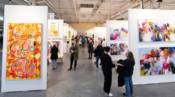 4月15日,参观者在科威特首都科威特城现代艺术博物馆观展。