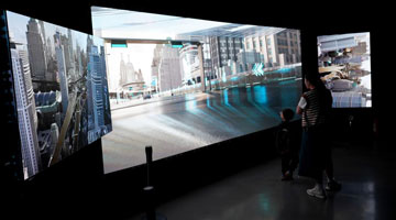 4月22日,参观者在台南大新美术馆观看“‘共南风’大新两岸双城青年艺术交流展”。新华社记者 齐菲 摄