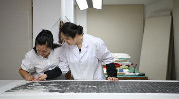 4月27日,工作人员在白鹅潭大湾区艺术中心广东美术馆布展。