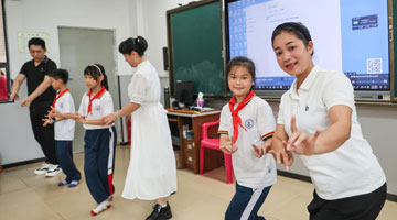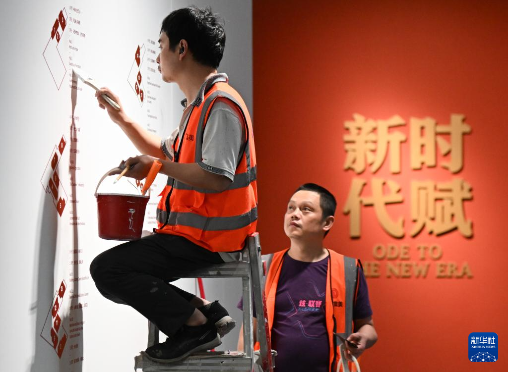 4月27日,工作人员在白鹅潭大湾区艺术中心的广东美术馆进行安装工作。