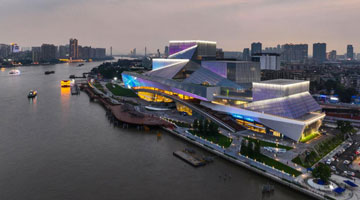 4月26日拍摄的白鹅潭大湾区艺术中心(无人机照片)。