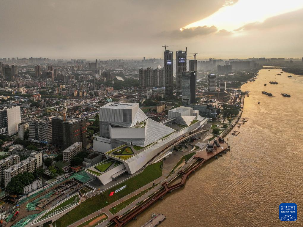 4月27日拍摄的白鹅潭大湾区艺术中心(无人机照片)。