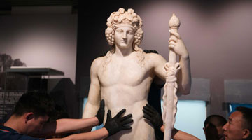 7月15日,观众在新疆库车市龟兹魏晋古墓遗址博物馆参观3号墓。
