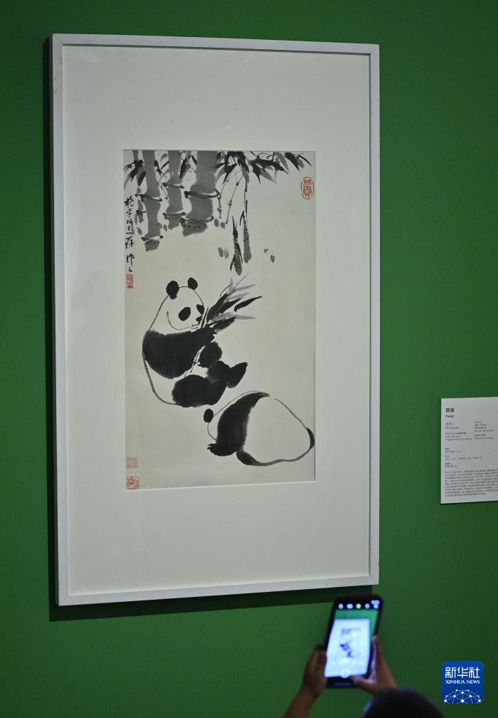 7月24日,参观者在清华大学艺术博物馆拍摄吴作人的画作《熊猫》。