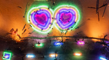 1月2日,在哈尔滨市兆麟公园,游客在冰灯艺术游园会园区内观赏冰灯(无人机照片)。