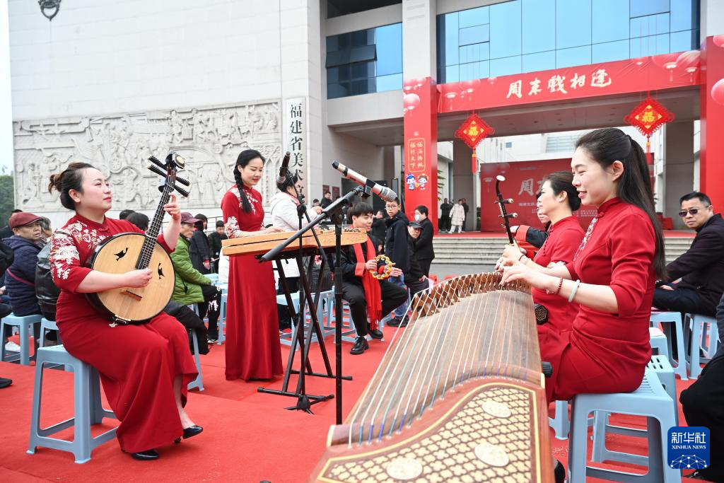 2月16日,福建芳华越剧院演员演奏《国风炫乐》。