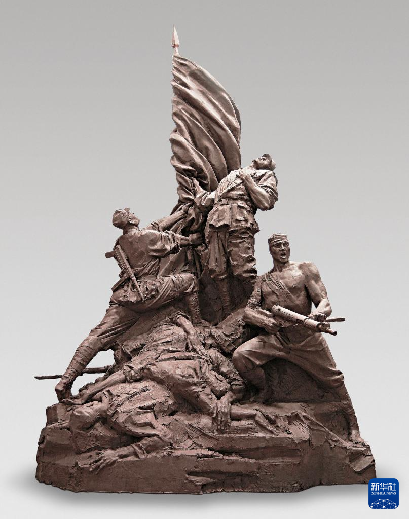 这是解放军文工团雕塑创作员郎钺参与创作的雕塑《前赴后继》。