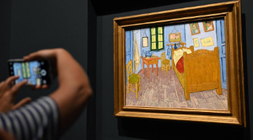 8月20日,观众在拍摄梵高的名作《梵高在阿尔勒的卧室》。
