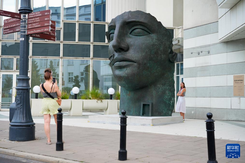 这是9月5日在波兰首都华沙街头拍摄的雕塑《廷达罗》。