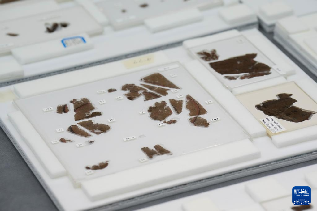 这是10月13日在湖南省博物馆拍摄的部分长沙子弹库战国帛书。