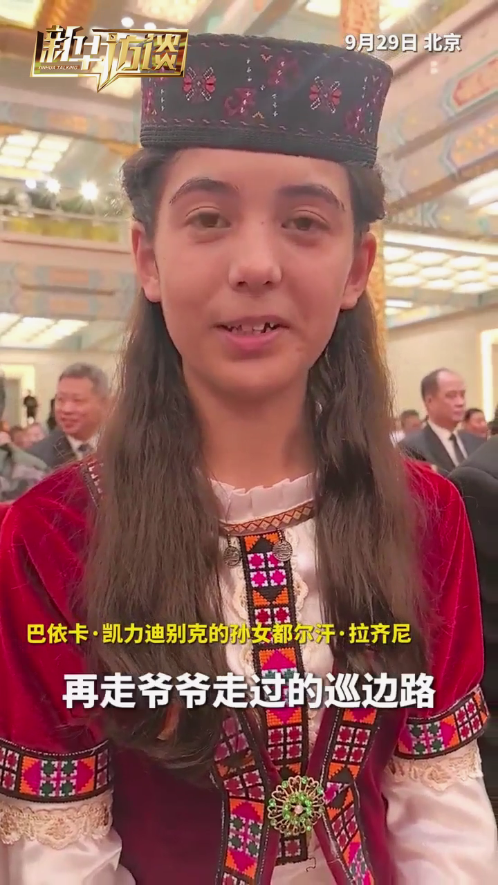 在国家勋章和国家荣誉称号颁授仪式现场,“人民卫士”国家荣誉称号获得者巴依卡·凯力迪别克的孙女都尔汗·拉齐尼说:“为爷爷感到骄傲,我想再走爷爷的巡边路。”她说长大了想当一名军医,像爷爷和爸爸一样守卫边疆守卫祖国。